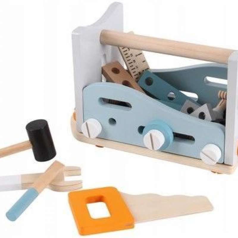 Igračka je u potpunosti napravljena od drveta. Set uključuje mnogo elemenata kao što su zavrtnji, pričvršćivači, ekseri i navrtke. Uz njihovu pomoć, mališan može slobodno da kreira različite strukture. Igračka uključuje i brojne alate - testeru, čekić, ključ, šrafciger i lenjir. Radionica je okrečena bojama bezbjednim za djecu, a svaka ivica je blago zaobljena.