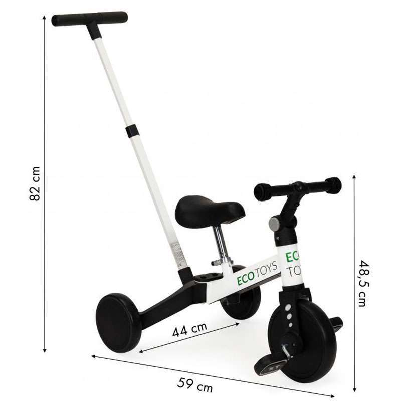 Tricikl za djecu ima mogucnost transformacije balansnog bicikla u pokretan tricikl sa pedalama, omogućava djetetu da bezbjedno počne da uči da vozi ovu vrstu bicikla.