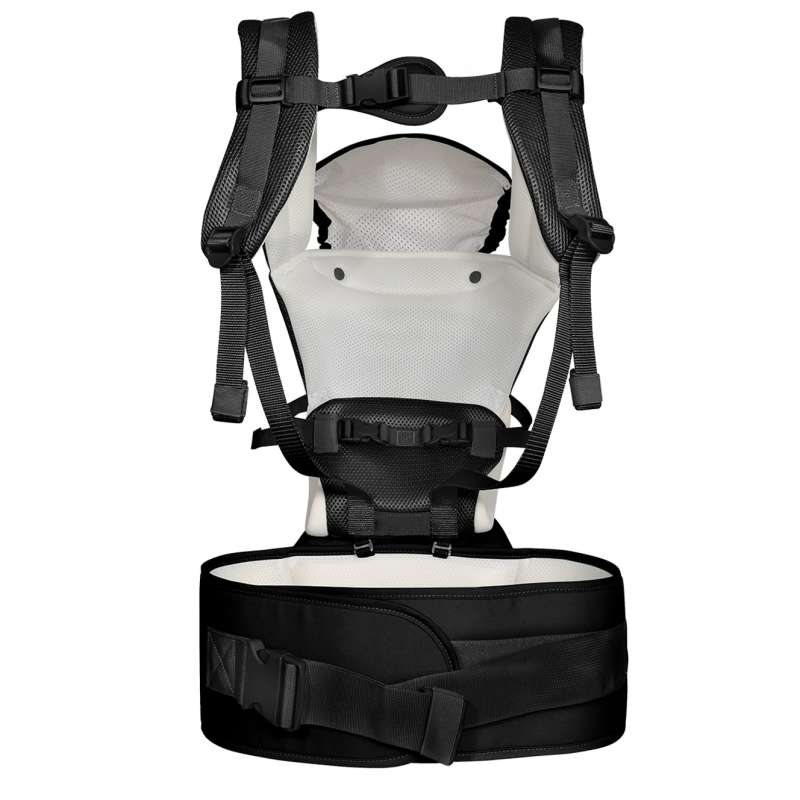 • Široki pojas oko struka i sjedište za kukove pomažu da se težina bebe ravnomjerno rasporedi kroz struk do gornjeg dijela leđa;