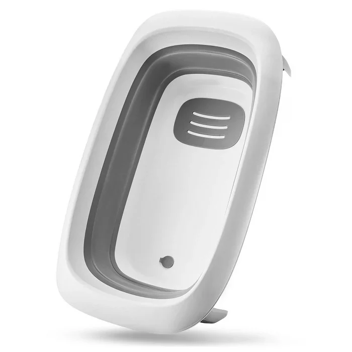 BUBBLY vam omogućava da koristite kadicu i pult za previjanje u različitim uslovima. Kadicu možete koristiti samostalno ili na stalku, a zahvaljujući silikonskom dijelu, lako se sklapa. Pult za previjanje se može montirati zasebno, okačiti sa strane rama ili postaviti direktno na kadicu. Idealno rešenje za mala kupatila ili spavaće sobe, ali i za putovanja. Pult za previjanje je dizajniran za djecu do približno 12 mjeseci ili do 11 kg, dok će kadica trajati do približno 2 godine. Prebacivanje iz kadice u pult za previjanje je brzo i jednostavno. Djelove možete sastaviti i rasklopiti za nekoliko sekundi, a ergonomska visina stalka olakšava brigu o bebi bez prekomjernog savijanja. Lako sklapanje i rasklapanje Silikonski dio se sklapa ravno, a stalak zauzima malo prostora kada se sklopi, što ga čini lakim za nošenje. Stabilna konstrukcija sa neklizajućim nožicama obezbjeđuje bezbjednost, a cijela jedinica je lagana za nošenje. Odvod sa dugim crijevom. Kadica ima praktičan odvod sa crijevom dužine 151 cm. Ovo vam omogućava da lako ispustite vodu direktno u lavabo ili kadu, bez nepotrebnog napora. Korpa za dodatke Ova praktična korpa za dodatke pomaže vam da sve držite na dohvat ruke. U nju možete smestiti kozmetiku, peškire i male igračke za kupanje.