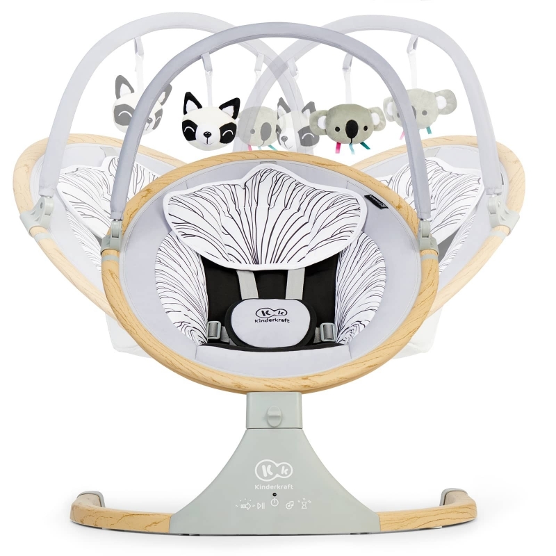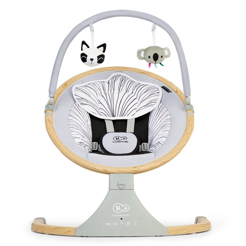 Podesiva traka sa igračkicama, pričvršćena je sa obje strane, lako se instalira i uklanja. Ima 2 plišane igračke koje će djetetu zainteresovati i podstaći mu maštu. Traka za sa igračikicama nije predviđena za prenošenje stolice za ljuljanje.