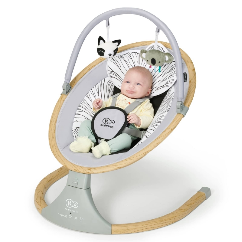 Stolica za ljuljanje Kinderkraft LULI ima podesive sigurnosne pojaseve u 5 tačaka, koji istovremeno obezbjeđuju udobnost djeteta. Pojasevi Imaju širok i mekan međunožni kaiš.