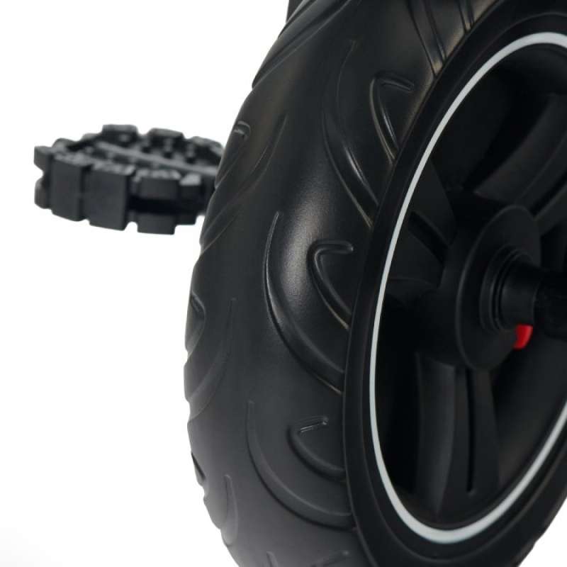 • Funkcija „praznog hoda“ omogućava djetetu pedaliranje bez pokretanja tricikla. Mališan sa puno radosti okreće pedale, a roditelj kontroliše brzinu vožnje.