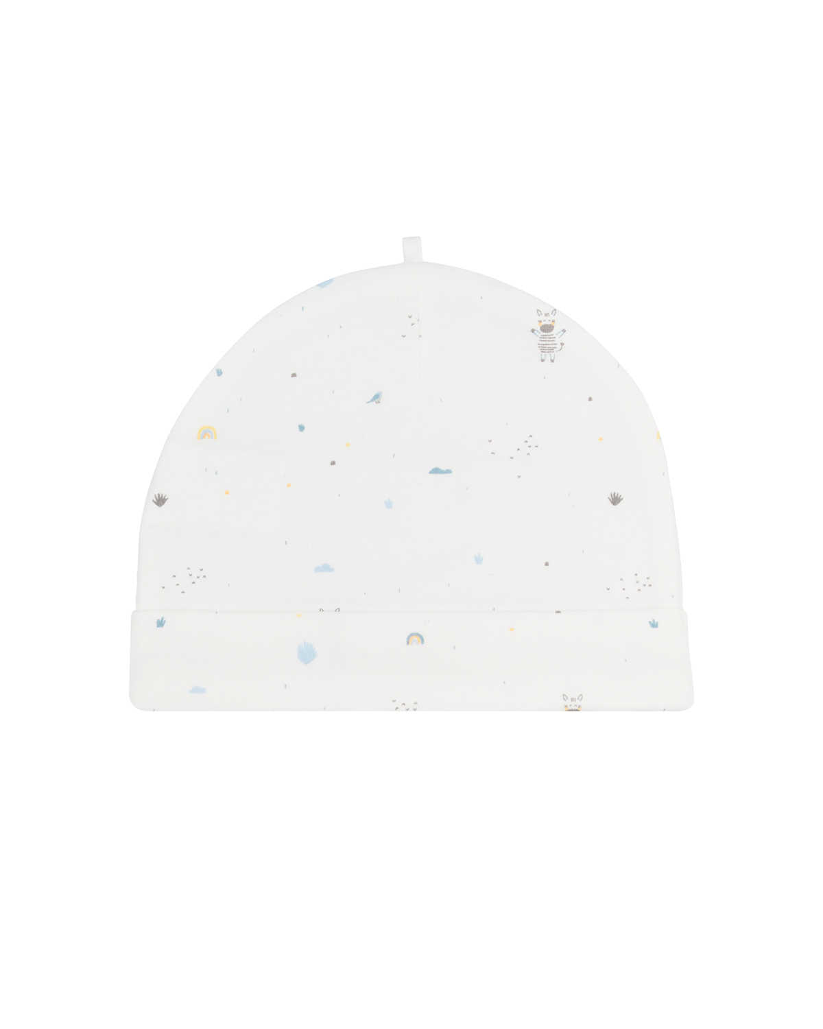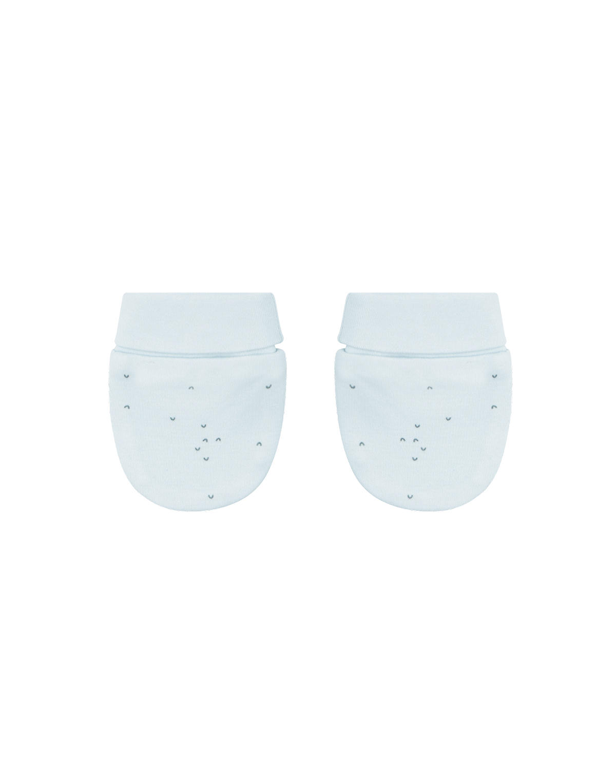 Sadrži sve neophodne komade za prve dane: pantalone sa stopalima, bodi dugih rukava, kapu, rukavice i podbradak