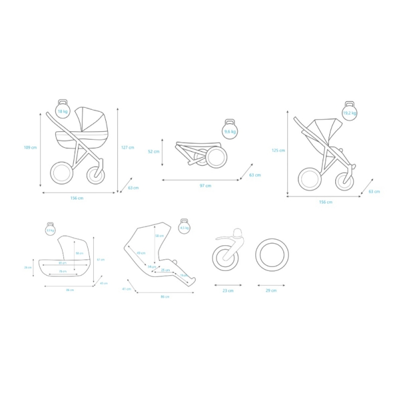 Kolijevke se mogu montirati na konstrukcije rotirati u oba smjera vožnje. Prostrane tende i zimske navlake štite bebu od sunca i hladnoće.