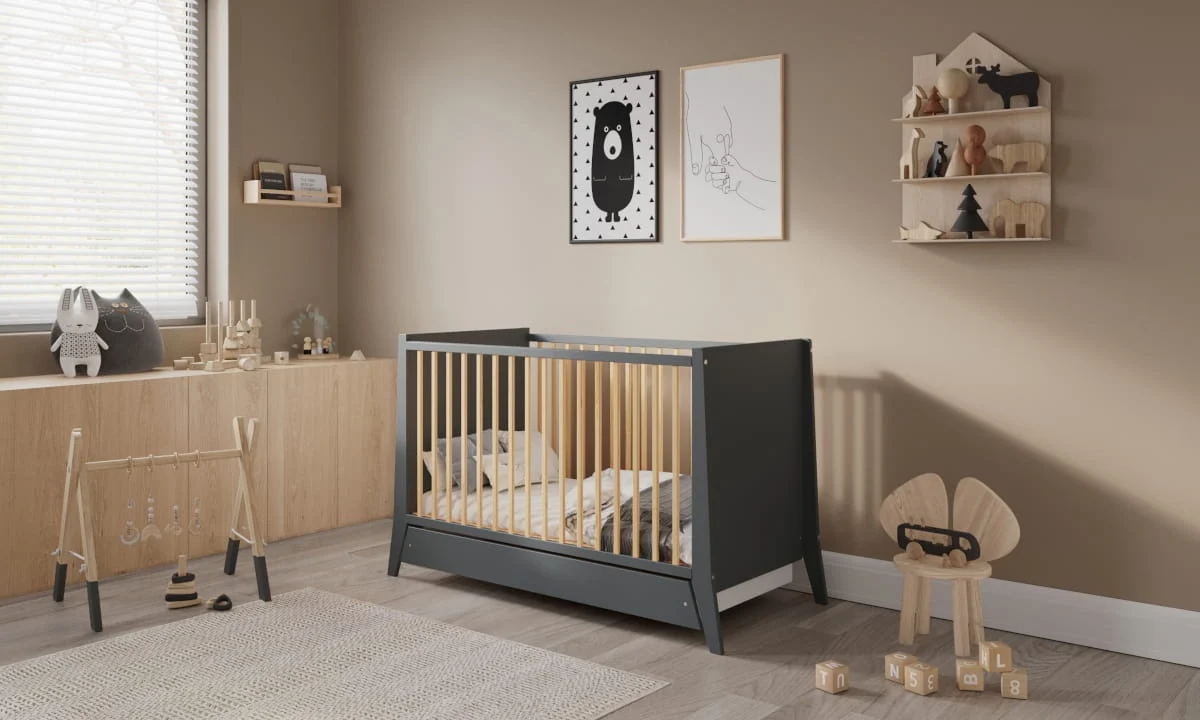 Prostor ispod kreveta je pametno uređen, u njega možete lako smjestiti sve potrebne stvari za bebu: pelene, odjeću, rezervnu posteljinu. Poklopac preko fioke obezbjeđuje diskreciju i štiti važne stvari za Vašu bebu od prašine. Verzija sa fiokom dostupna je na sajtu u drugoj ponudi.